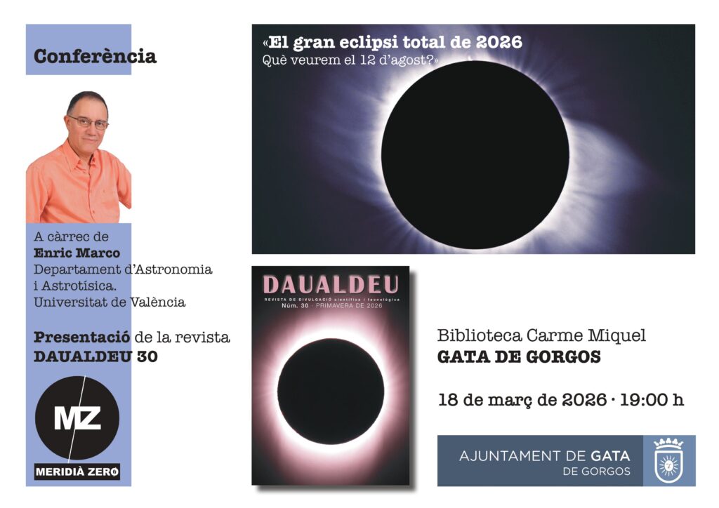 CONFERÈNCIA: “El gran eclipsi total de 2026. Què veurem el 12 d’agost?” per Enric Marco i PRESENTACIÓ de la Revista DAUALDEU, núm. 30